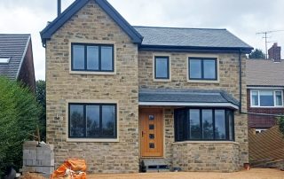 Derby Road Self-Build Dream Home Derby Road Self-Build Dream Home Derby Road Client Objectives The client’s vision was to replace an outdated dormer bungalow with a bespoke, stone-faced timber frame home. With a tight budget, the goal was to maximise value without compromising on quality, delivering a comfortable and characterful family residence. Key objectives included: Demolition of the existing dormer bungalow. Delivery of a cost-effective yet high-quality stone-faced timber frame build. Supporting the client through the self-build process with transparent advice and budget management. Site Overview The project was