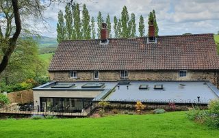 Hillside Bespoke Farm House Extension Hillside Bespoke Farm House Extension Hillside Client Objectives The client’s brief was to create a bespoke extension at Hillside that seamlessly blended into the surrounding landscape. The design needed to maximise natural light, provide contemporary spaces, and integrate harmoniously with the hillside setting. Key objectives included: Delivering an extension partially built into a hillside. Using premium ashlar stone and aluminium framing to complement the landscape. Introducing large skylights to flood interiors with natural light. Ensuring the extension enhanced both the property and the wider golf course